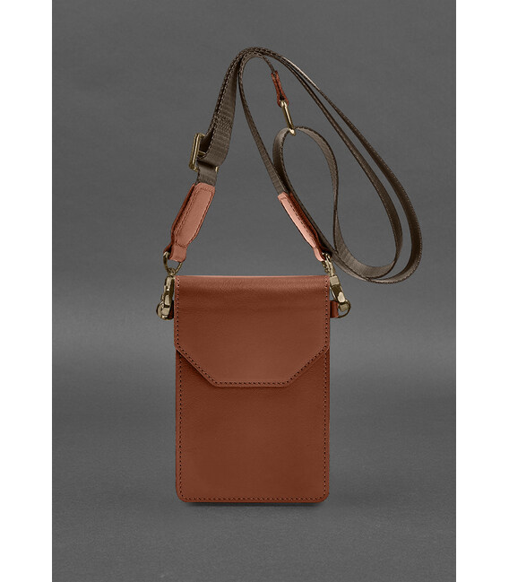 Шкіряна сумка для телефону maxi Світло-коричнева
