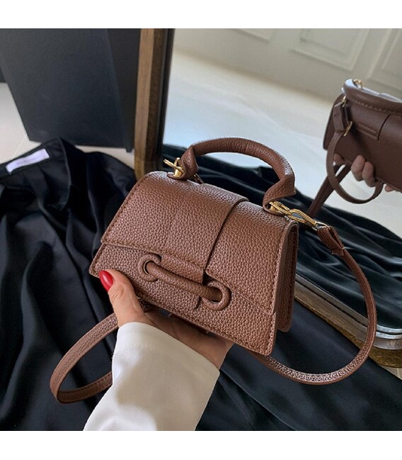 Стильна жіноча сумка кросбоді з екошкіри Особливості: розміри 16 x 10 x 7 смСумка має одне основне відділення, яке закривається за допомогою клапана. Наплічний довгий ремінець регулюється по довжині, відстібається за допомогою карабінів.Без підкладки Колір: темно-коричневий Колір фурнітури: золотоЗнайшли цю модель дешевше? Зв'яжіться з нами, і ми запропонуємо Вам найнижчу ціну в Україні, тому що виробник цього товару.