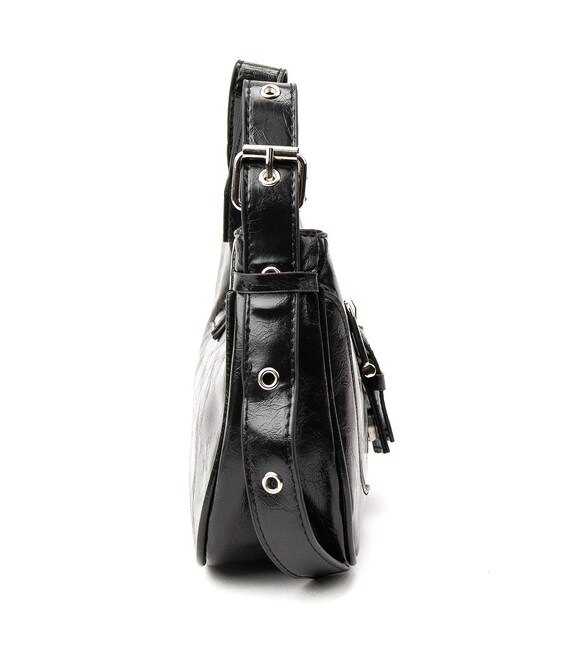 Стильна жіноча сумка кросбоді з екошкіриОсобливості: розміри 28 x 13 x 8 смСумка має одне основне відділення, яке закривається за допомогою блискавкиНаплічний довгий ремінець регулюється по довжині, не відстібаєтьсяПідкладка текстиль Колір: чорний Колір фурнітури: сріблоЗнайшли цю модель дешевше? Зв'яжіться з нами, і ми запропонуємо Вам найнижчу ціну в Україні, тому що виробник цього товару.