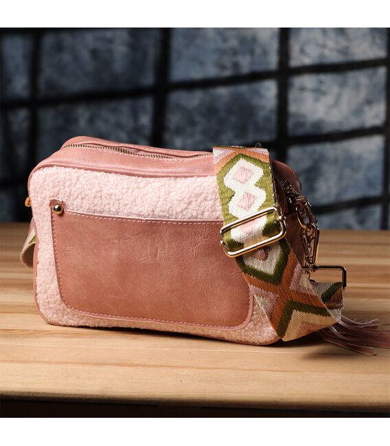 Жіноча сумка з плюшевою вставкою на лицьовій стороні з екошкіри Vintage sale_15133 Рожевий