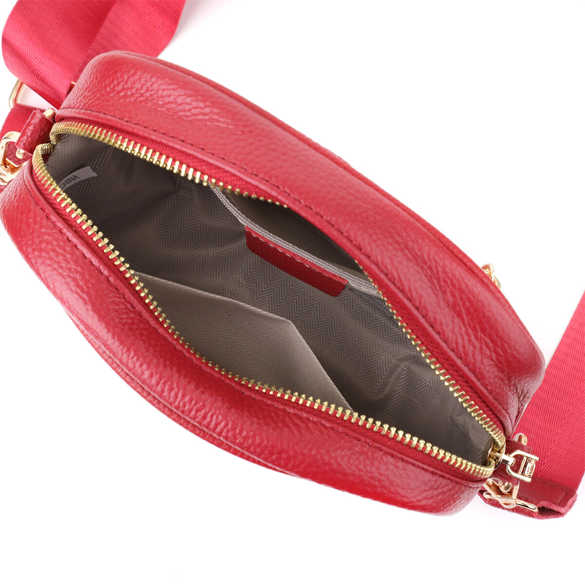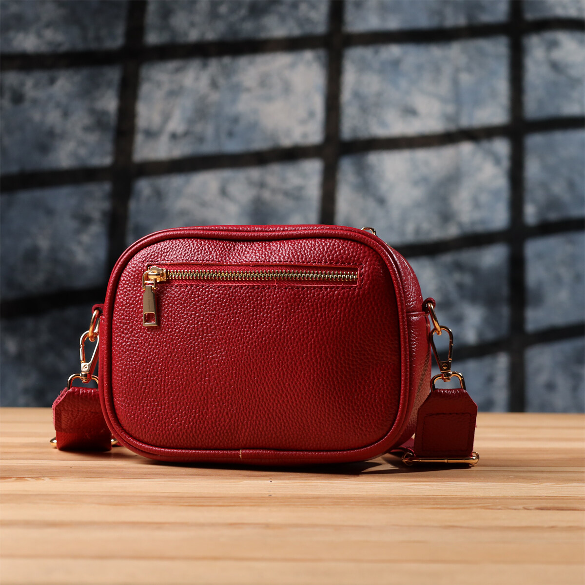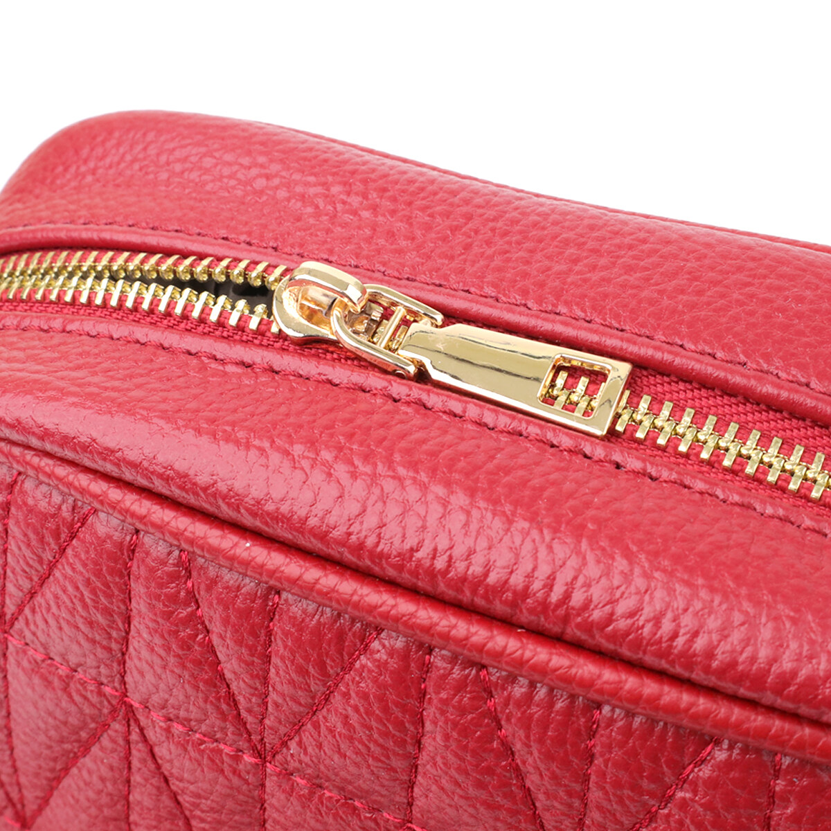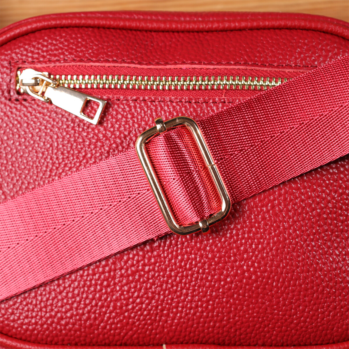 Стьобана сумка для жінок у насиченому червоному кольорі з натуральної шкіри стане ефектним акцентом вашого образу, додаючи яскравості та харизми. Якісна щільна шкіра приємна на дотик і підкреслює високий рівень виконання. Компактна чітка форма робить модель зручною та акуратною, а стібка на лицьовій стороні надає їй витонченого дизайнерського характеру. Сумка закривається на блискавку, всередині знаходиться основне відділення з кишенею на блискавці та відкритою кишенею для дрібниць, а на тильній стороні передбачена зовнішня кишеня на блискавці для швидкого доступу до потрібних речей. Знімний текстильний ремінь, що регулюється, забезпечує комфорт при носінні, а фурнітура під жовте золото стильно відтінює насичений червоний відтінок шкіри. Ця сумка стане універсальним аксесуаром для повсякденних виходів та особливих випадків, підкреслюючи смак та увагу до деталей.