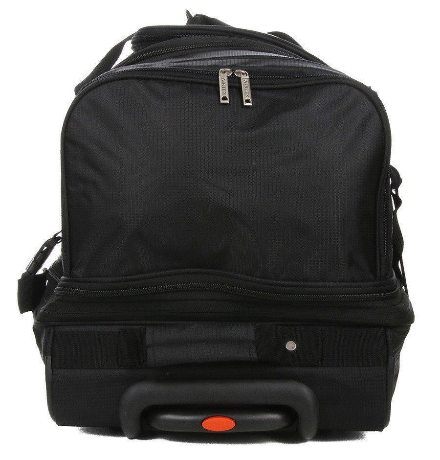 Сумка на колесах Airtex Atlas має перевагу завдяки наявності 2-х відділень. Перше оснащено великою сітчастою кишенею на блискавці і забезпечує зберігання будь-якого типу багажу. Друге відділення для зручного зберігання одягу, завдяки 2 схрещеним і еластичним підтримуючим ременям. Зовні сумка також практична завдяки міцній тканині (нейлон). Є 2 бічні кишені на блискавці (наприклад для взуття), а також кишеня на блискавці з легким доступом.