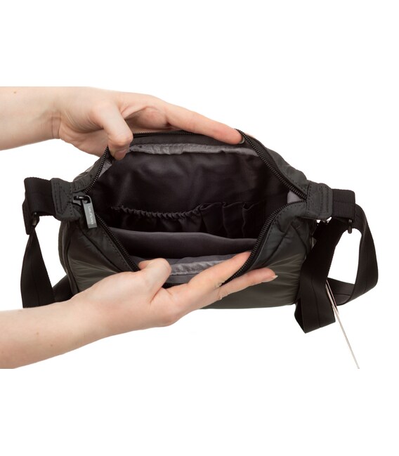 Отличительная черта сумки - возможность увеличить вместительность за счет открытия молнии.