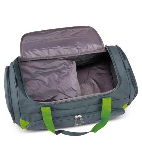 Практична, дорожня сумка виконана в сучасному, динамічному дизайні, представлена в декількох кольорах. На фронтальній поверхні розташована кишеня на блискавці для необхідних дрібниць, також з боків вироба є два містких відділа. Для зручності переміщення передбачений знімний плечовий ремінь з можливістю регулювання довжини або дві міцні переносні ручки.