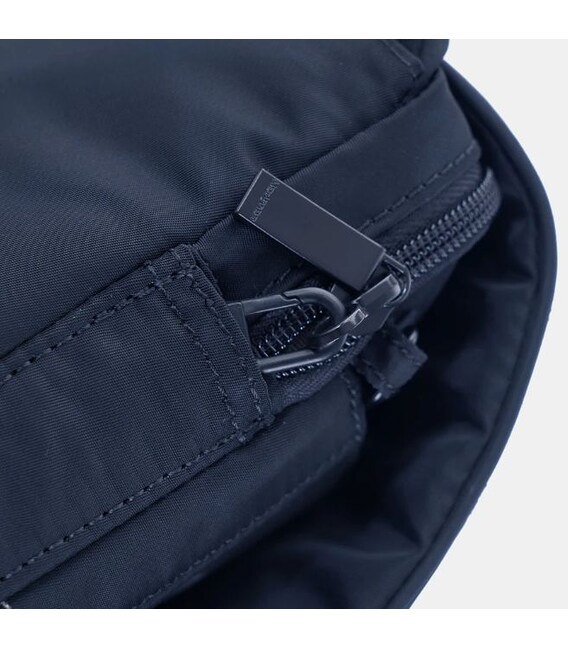 Зручна жіноча сумка, середнього розміру виготовлена з міцної тканини 100% Twiil Nylon з плечовим ременем дозволяє регулювати довжину. Виріб оснащений одним великим відділенням на блискавці, з гаком безпеки, всередині якого кишеня на блискавці з RFID-захистом від зчитування Ваших персональних даних та невеликі кишені де можна розташувати смартфон або документи. Також є додаткові дві кишені на блискавці. Сумка закривається клапаном на магнітну кнопку. Виріб декорований брелоком з назвою бренду.