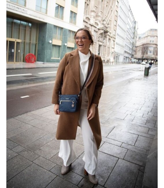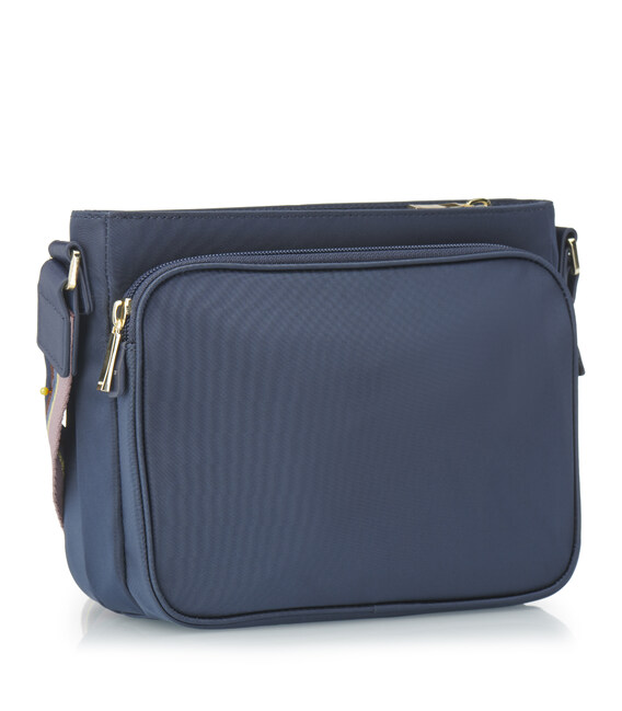 Компактна сумочка з міцної тканини 100% Twill Nylon + шкіра, оснащена яскравим ременем, що дозволяє регулювати довжину. У вироби є три відділення на блискавці. В одному відділенні є кишеня на блискавці, в іншому - кишеня для документів, необхідних дрібниць і карабін для ключів. Третє відділення передбачено для телефону, закривається на блискавку. На фасадній частині розташована кишеня на блискавці. Також виріб декороване брелоком з назвою бренду. Ця сумка буде стильним доповненням до Вашого щоденного образу.