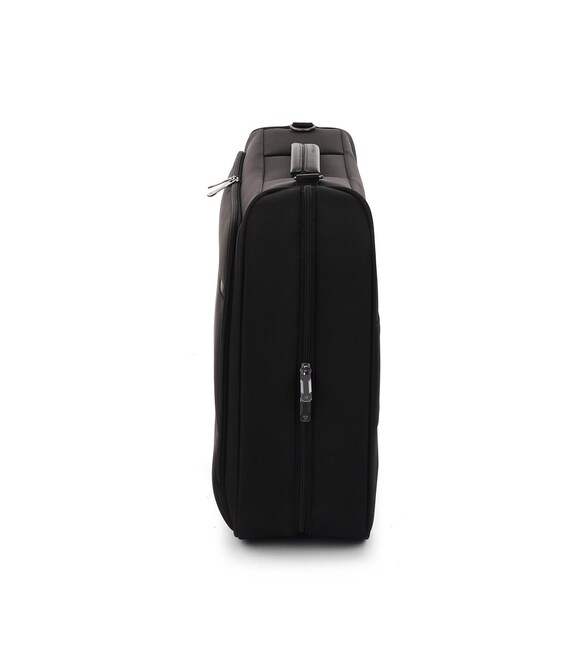 Портплед з колекції BIZ 4.0 виконаний з щільного нейлону 1680D, також підкладка з поліестеру 150D, дані матеріали надійні і міцні, стійкі до вологи і вигоряння. Портплед оснащений текстильної підйомної ручкою і знімним плечовим ременем з можливістю регулювати довжину. Виріб закривається на блискавку і тримає форму. Всередині на бічних поверхнях є стримуючі ремені на застібках, містить водонепроникну кишеню з ПВХ. На фронтальній поверхні розташована кишеня на блискавці з стримуючими кутами, в якому облаштовано міні-офіс, де Ви зможете розмістити письмове приладдя, банківські картки, телефон. Основне відділення портплед дуже містке, є одна вішалка. Передбачено багато кишень на блискавці під сіткою для різних необхідних дрібниць.