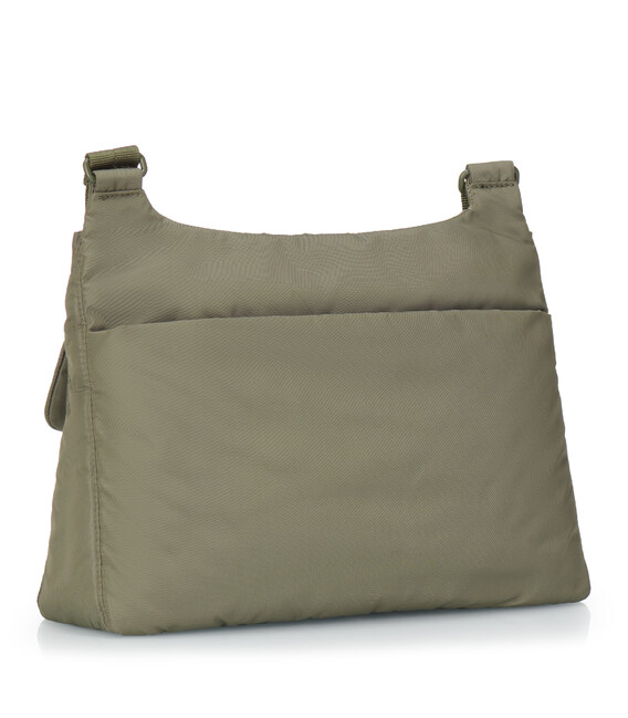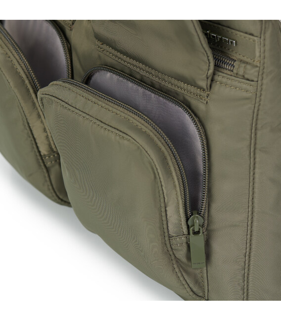 Сумка середнього розміру виготовлена з міцної тканини 100% Twiil Nylon. Сумку можна носити на плечі, завдяки регульованому плечевому ременю. У вироби є три відділення на блискавці. В основному, місткому відділенні є кишеня на блискавці з RFID-захистом від зчитування Ваших персональних даних, на зовнішній стороні сумки розміщено друге відділення, яке оснащене міні-офісом, де можна розташувати смартфон і приладдя для письма. Також, на фасадній частини розташовано дві невеликих накладних кишені на блискавці, які прикриваються клапанами на магнітній кнопці, в яких можна розмістити речі першої необхідності. Третє відділення розташоване на задній стороні сумки, закривається на блискавку. Виріб декорований брелоком з назвою бренду. Сумка може бути використана в будь-якій ситуації - в місті, для бізнесу або в поїздці.