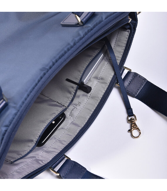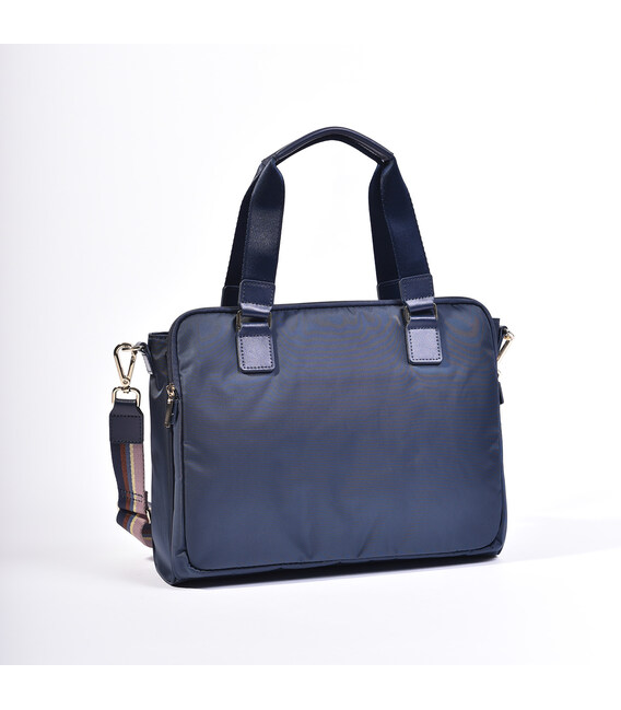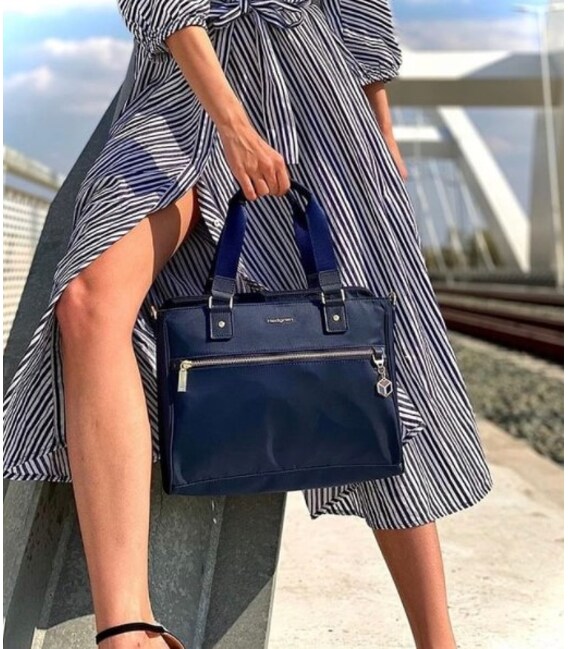 Компактна сумка класичної форми виготовлена з міцної тканини 100*200D Twill Nylon, яка має стійкість до зношування, вигоряння і c водостійкими властивостями. Оснащена міцними підйомними ручками c шкіряними вставками для перенесення. Сумку можна носити на плечі, завдяки знімному настроюється плечового ременя. Виріб оснащений двома відділеннями на блискавці. В одному відділенні є кишеня на блискавці, міні-офіс, де можна розташувати телефон, бізнес-дрібниці і ключі, для них призначений карабін. На фасадній частині розташована кишеня на блискавці. З заднього боку є кишеня для ноутбука до 13" або документів формату А4. Виріб декорований брелоком з назвою бренду. Сумочка може бути використана в будь-якій ситуації - в місті, для бізнесу, в поїздці завершуючи Ваш стильний образ.