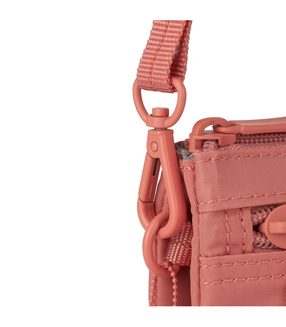 Зручна жіноча сумка через плече, маленького розміру виготовлена з міцної тканини з знімним ременем, що дозволяє регулювати довжину. У виробі є три відділення на блискавці, в одному з яких є слоти для карт і RFID-захист, кишеня для документів, телефону і дрібниць. На фасадній частині розташована кишеня на блискавці.
