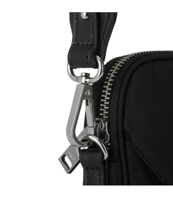Плоский вертикальний кросовер, що звільняє руки та дає можливість швидко скористатися предметами першої необхідності, ідеально підходить для тих випадків, коли потрібні тільки ключі, гаманець та телефон. Сумка оснащена зовнішньою кишенею на клапані, основне відділення на блискавці, де розміщена кишеня для телефону, додаткова кишеня з RFID-захистом та карабін для ключів. Виконана зі 100% переробленого поліестеру PET (поліефірна тканина з перероблених пластикових пляшок).