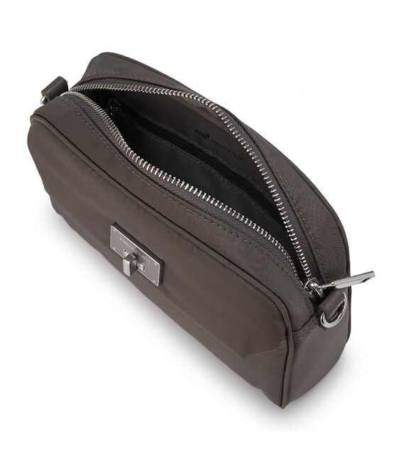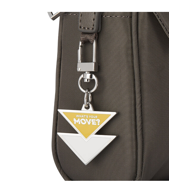 Завдяки своїй універсальності сумка через плече, заслужено, найпопулярніша модель. Дозволяє звільнити руки і дає можливість швидко скористатися предметами першої необхідності, компактна і водночас містка. Оснащена зовнішньою кишенею на клапані, основне відділення на блискавці, де розміщений відділ для телефону, додаткова кишеня на блискавці з RFID-захистом та карабін для ключів. Виконана зі 100% переробленого поліестеру PET (поліефірна тканина з перероблених пластикових пляшок).