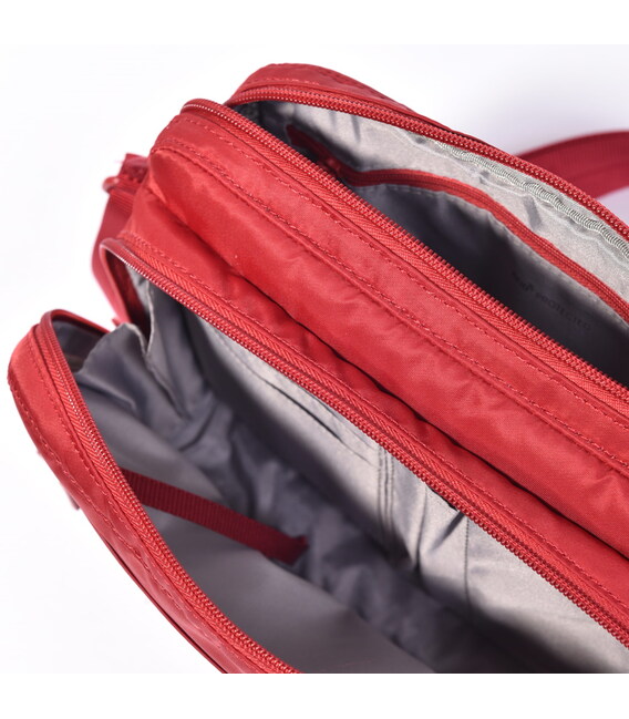 Жорсткі тональні акценти і блискавки, що замикаються, в основному відділенні створюють сумку, яку надійно брати собою в будь-яку подорож, в той час як легкий і красивий дизайн додає жіночності. Організація з кількома кишенями, які закриваються на блискавку і основним відсіком, що розширюється, робить сумку дуже зручною.