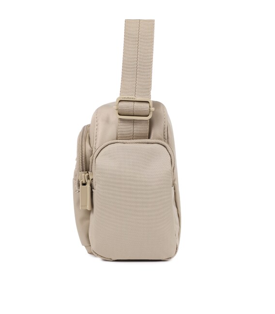 Зручна та компактна сумка через плече, невеликого розміру виготовлена з міцної тканини з ременем, що дозволяє регулювати довжину. У виробі є основне відділення на блискавці, в якому розташована кишеня з RFID-захистом від шахрайства, також відділ для телефону і дрібниць. На фасадній частині виробу накладні кишені спереду та з обох боків, закріваються блискавкою з якісною фурнітурою.