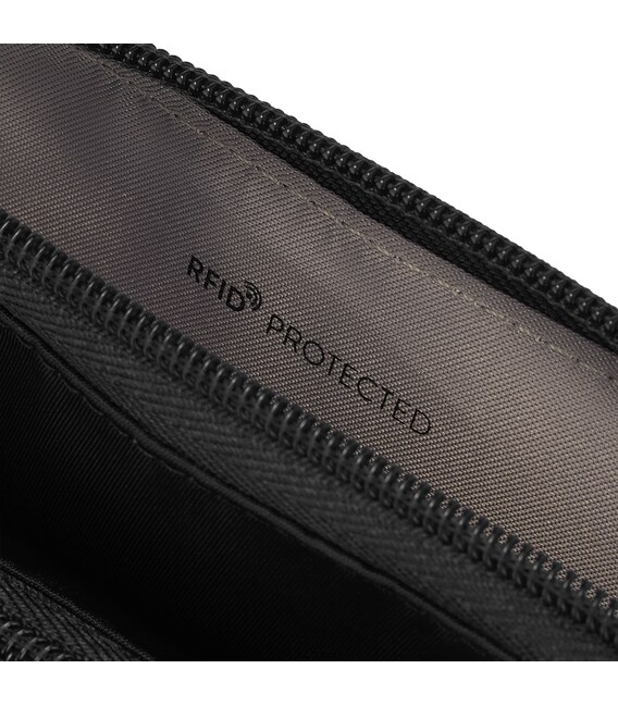 Виріб не великого розміру оснащенний ременем, що регулюється по довжині. Має два основних відділення на блискавці, один з яких оснащений RFID-захистом від зчитування персональних данних з карток та докумнтів. В другому відділенні можна розмістити смартфон та інші необхідні дрібниці. Стане ідельним супутником у подорожі, або як повсякденний аксесуар.