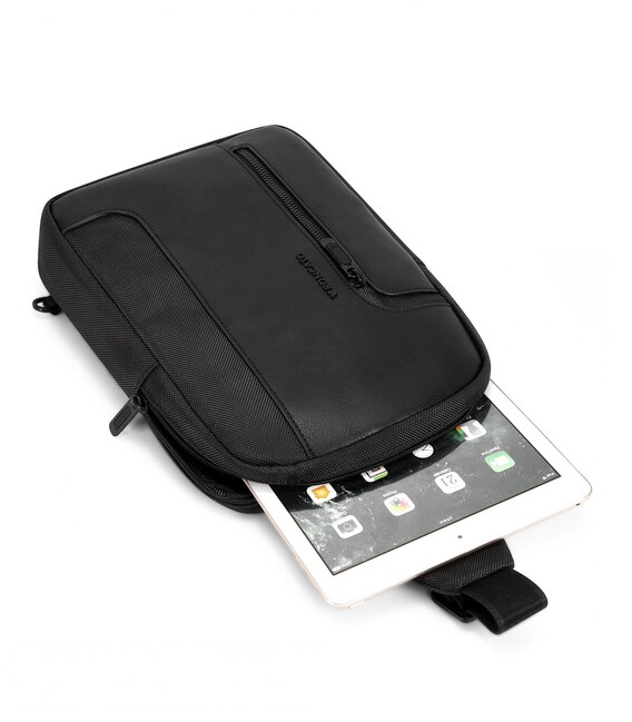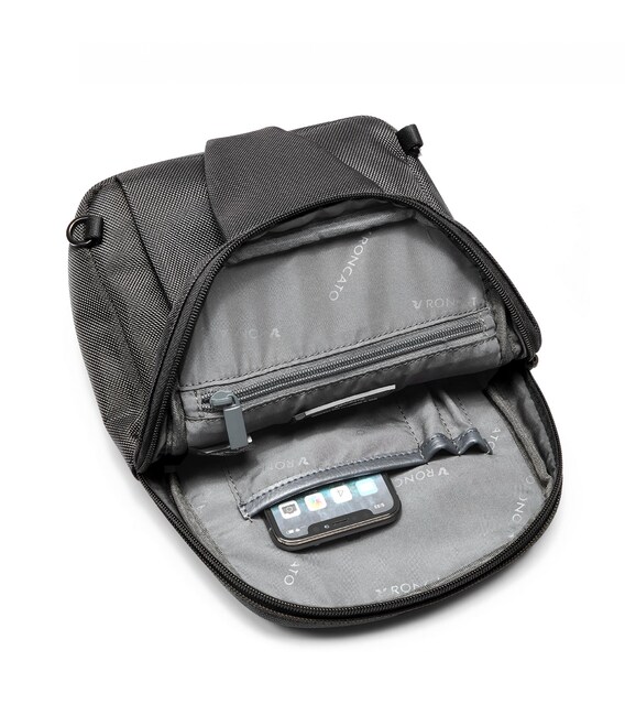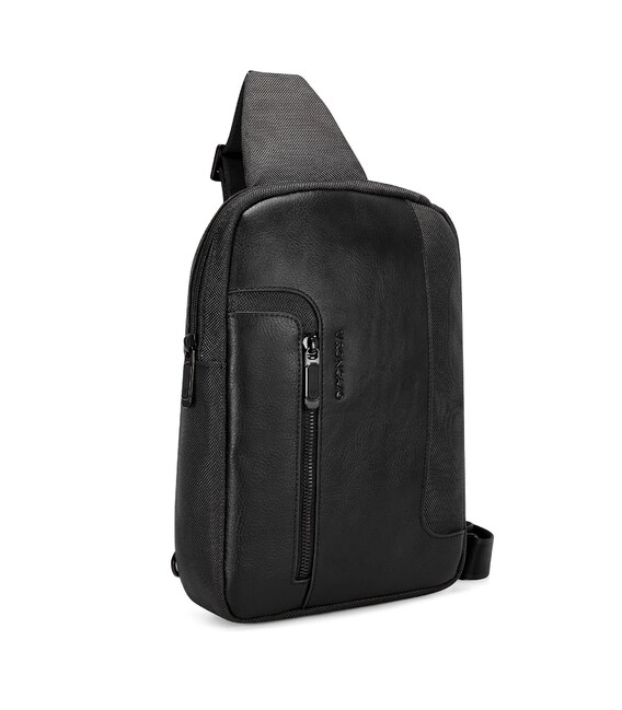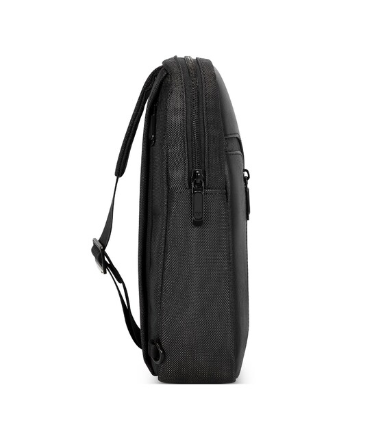 Вертикальна сумка слінг, виготовлена з еко-шкіри та щільного балістичного нейлону, з акцентом на функціональність. Оснащена глибоким основним відділенням з відділами для смартфона, планшета та пишучих предметів. З зовнішнього боку сумки розміщена невеликаа кишеня для речей першої необхідності. Також, задня частина виробу оснащена додатковою кишенею на блискавці. Для зручності перенесення сумка обладнана ременем, що регулюється по довжині.