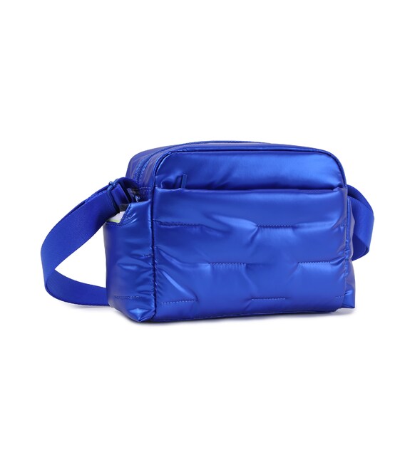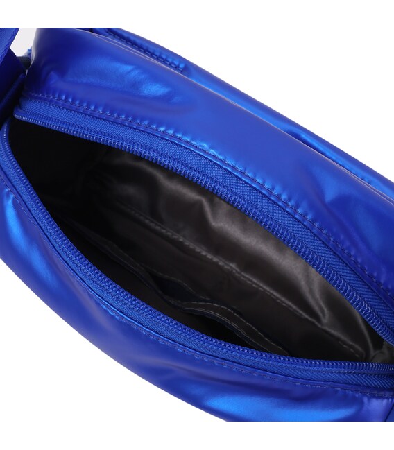 Містка, дута сумка через плече, звільняє руки і дає можливість швидко скористатися предметами першої необхідності в дорозі або кожен день. Оснащена трьома відділеннями на блискавці та боковими кишенями для дрібниць з карабіном для ключів. В основному відділенні 2-ві невеликих кишені і знімна, водовідштовхувальна косметичка на блискавці. Виконана з щільного 100% polyester.