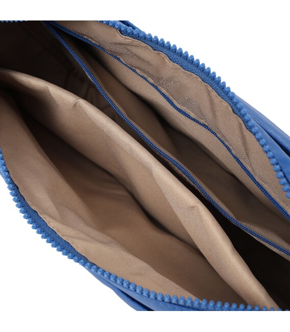 Зручна жіноча сумка, середнього розміру виготовлена з переробленого нейлону з водовідштовхувальним покриттям. Сумку можна носити на плечі, завдяки регульованому плечового ременя. У вироби є три відділення на блискавці, в одному з яких є кишеня на блискавці для планшета, телефону і дрібниць. На фасадній частині розташовано дві кишені на блискавці. Виріб декорований брелоком з назвою бренду.