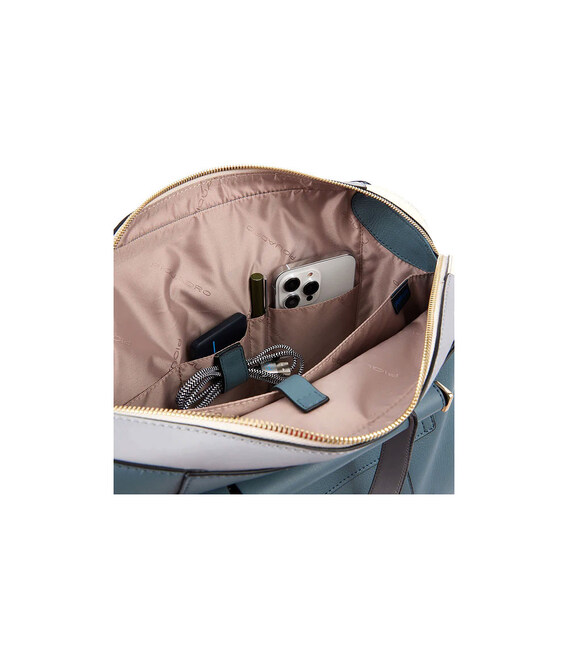 Piquadro CIRCLE CA4577W92 (блакитна з контрастними вставками) - жіноча шкіряна сумка для ноутбука 14 дюймів; на одне відділення. Велика, але від цього не менш елегантна модель з просторим місцем, куди помістяться всі необхідні для роботи атрибути. Гарна альтернатива жіночому робочому портфелю. Італійський стиль для ділових жінок. Колекція Circle уособлює суть сучасної жіночності в деталях: м'яка теляча шкіра, округлі форми, вишукана фурнітура з блискучою світло-золотистою обробкою, а також колірні рішення серії з контрастними вставками та чорними кантами, що надають динамічно та глибини дизайну. Ця колекція створена для зайнятої та елегантної жінки, яка шукає практичність та вишуканість.Детально про сумку Piquadro CIRCLE CA4577W92_AVGR✔️ Жіноча колекція Circle (W92)✔️ Дизайн/Колір: Blue-Grey/блакитний зі вставками сірого та білого кольору.✔️ Зовнішній матеріал: італійська натуральна шкіра.✔️ Підкладка: поліестер.✔️ Металева фурнітура світло-золотого кольору.✔️ Нижні металеві ніжки для захисту.✔️ Дві короткі ручки для носіння в руках.✔️ Наплічний ремінь (знімається, довжина регулюється).✔️ Шкіряний ремінець-фіксатор на спинці на висувну ручку валізи.✔️ Комплектується захисним чохлом-пильником. • 1 відділення на блискавці (вміщується формат А4).• Окрема кишеня для ноутбука 14".• Кишеня для iPad® 10,2''Air 10,9''Pro 11'• кабелю або ключів, петлею для ручки. PIQUADRO - відомий італійський бренд, який спеціалізується на виготовленні преміальної шкіргалантереї. Багаторічні традиції майстерності роботи з натуральною шкірою, уваги як до функціональних, так і до стилістичних деталей, а також завжди актуальні дизайнерські рішення для роботи, дозвілля та подорожей.
