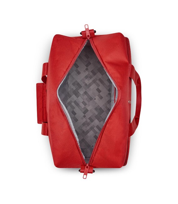 Дорожня сумка-ручна поклажа, зручний варіант для авіа подорожей. Зовнішня тканина виготовлена з нейлону та поліестеру для забезпечення довговічності та легкості, а внутрішня підкладка виготовлена з 100% переробленого RPet. Оснащена містким основним відділенням і зовнішньою кишенею для предметів які потрібні під рукою. Для зручності переміщення, оснащена з'єднувальними ручками і знімним, плечовим ременем.