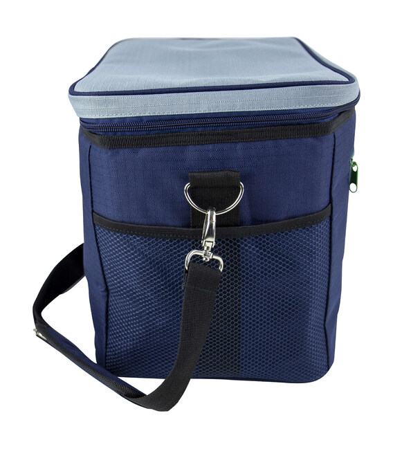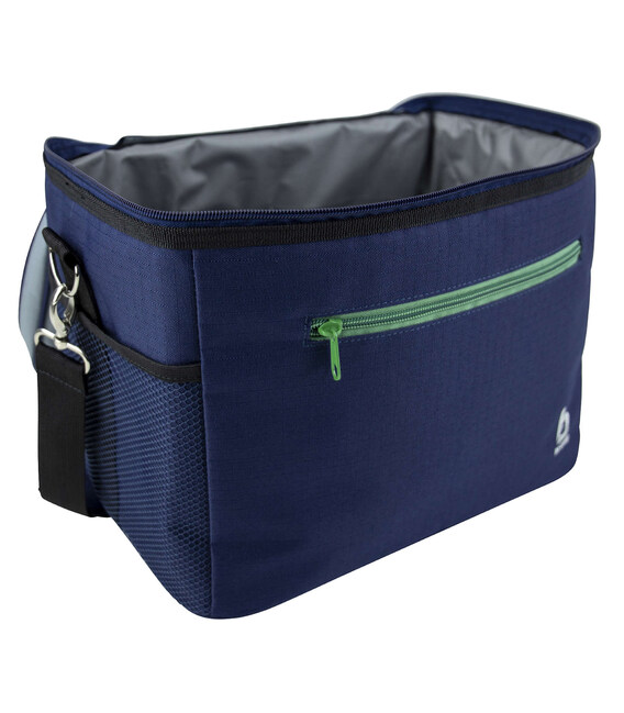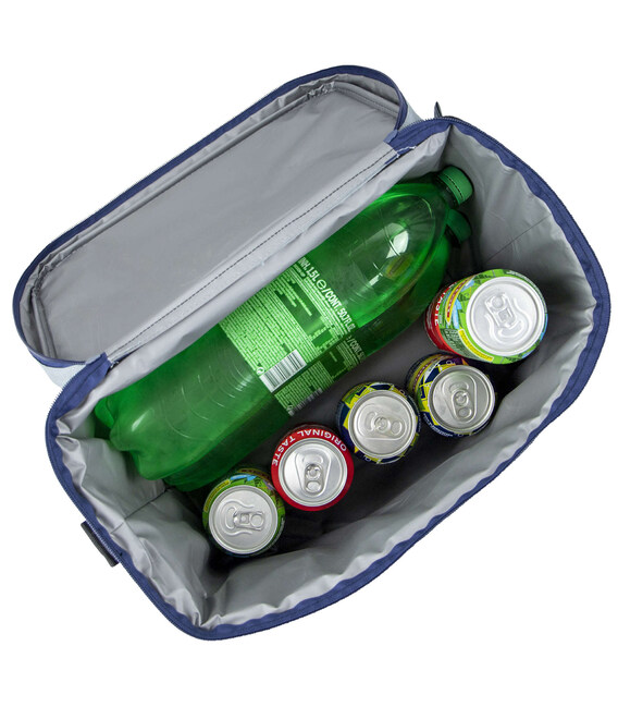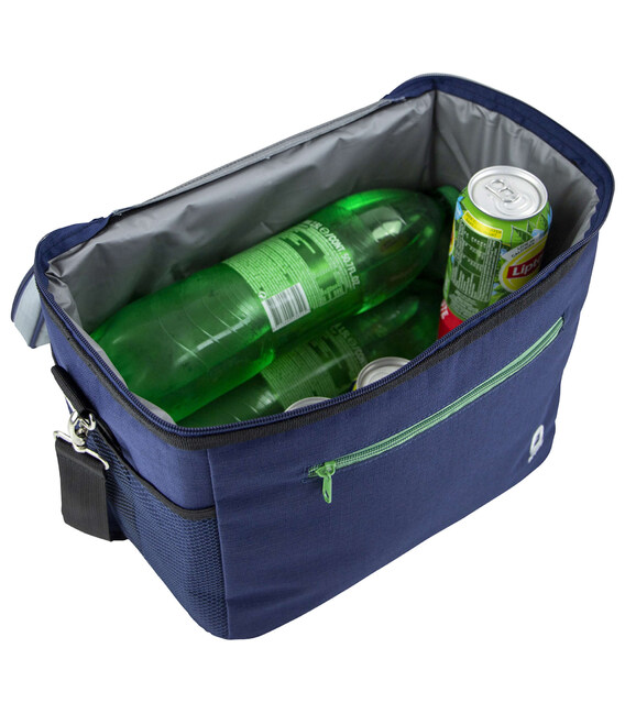 Внутрішнє покриття виготовлене з водонепроникного ПВХ-матеріалу, яке не вбирає запахів, легко миється та додатково зберігає температуру завдяки сріблястому кольору. Сумка має зручний плечовий ремінь, передню кишеню на блискавці та дві бічні сітчасті кишені для дрібниць чи пляшок. Завдяки міцному поліестеру зовнішня частина сумки стійка до зносу,забруднень та легко чиститься.