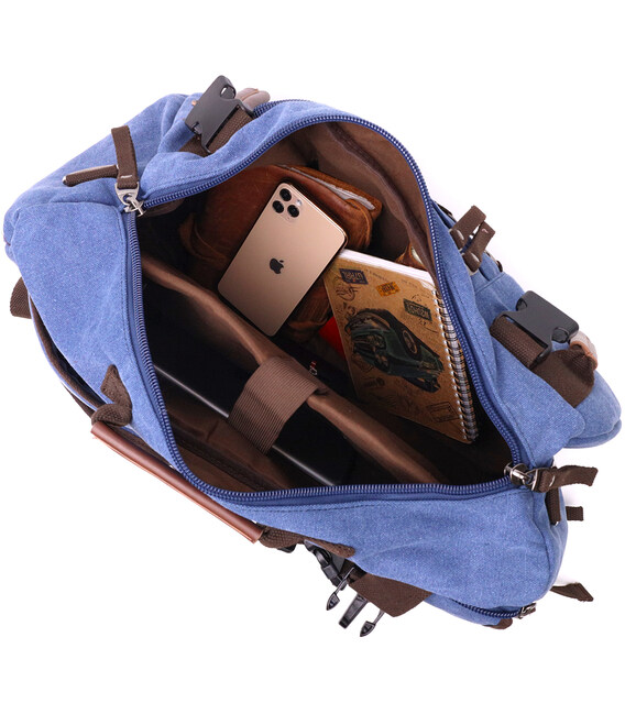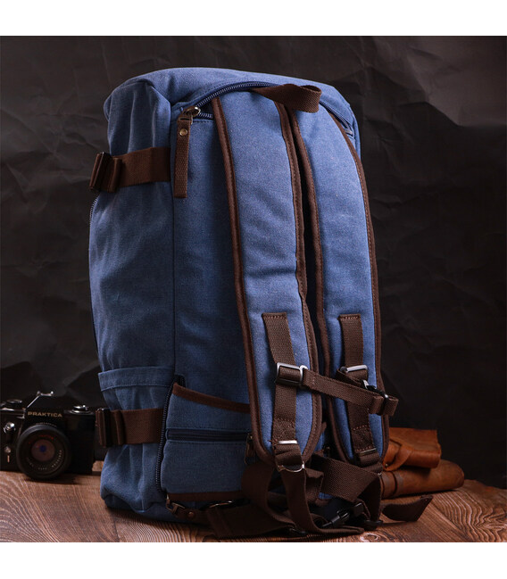 Функціональний рюкзак-трансформер у стилі мілітарі із щільного текстилю Vintage 22159 Синій