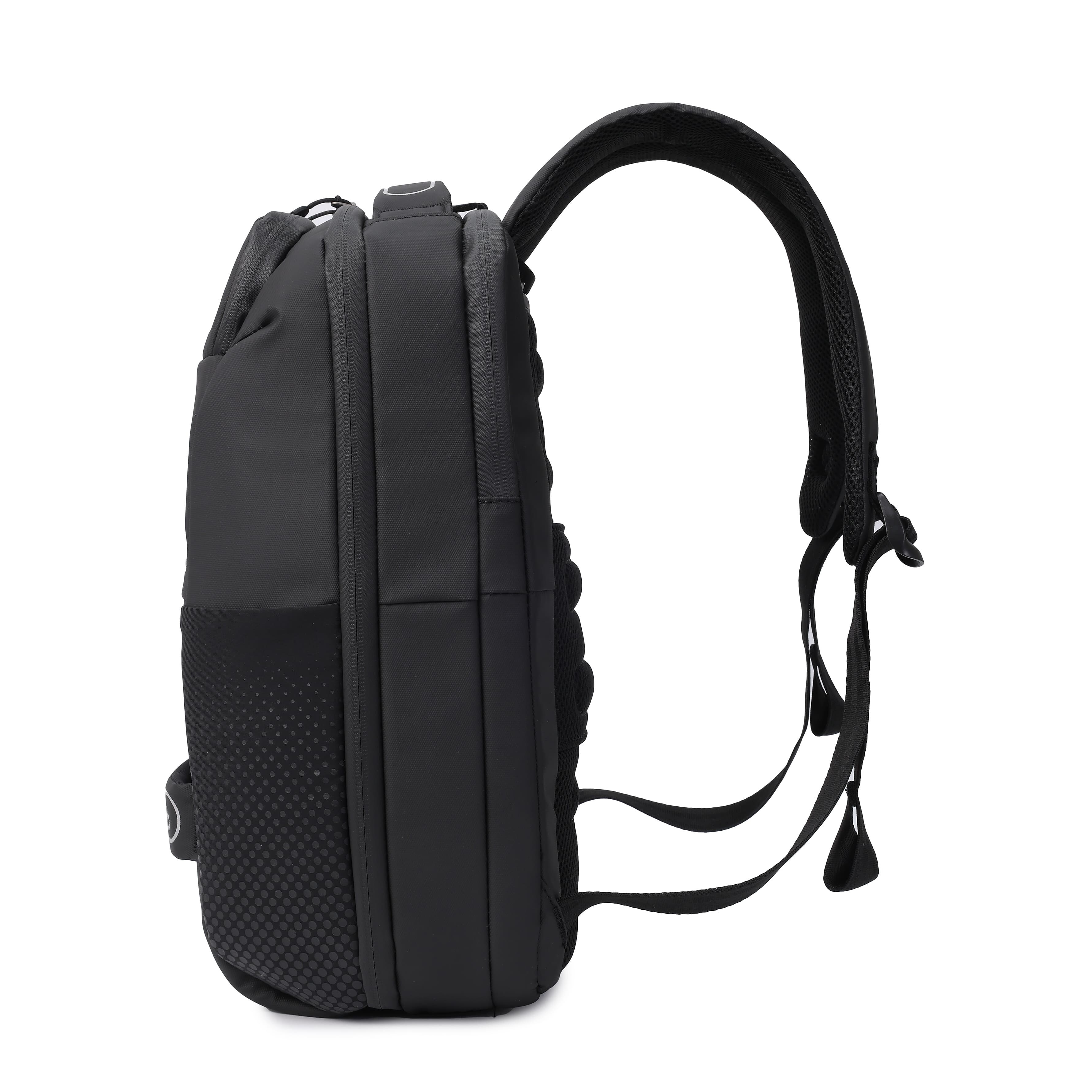 Вмісткий рюкзак підійде як і для щоденного використання, так і для подорожей. Зовнішня та внутрішня тканини виготовлені з 100% перероблених та сертифікованих матеріалів RPET (перероблені пластикові пляшки) зовнішня тканина: поліестер 600D RPET, внутрішня підкладка: поліестер RPET 150D. Має два основних відділення, одне з яких зі стримуючими кутами де розташована додаткова кишеня з RFID-захистом, відділ для смартфону та документів формату А4. Другий відділ для ноутбуку 15.6", на блискавці якого передбачена можливість розмістити навісний замок. Передня сторона оснащена кишенею для речей першої необхідності і світловідбиваючі елементи. На задній частині рюкзака розміщена кишеня для дощовика, планка для розміщення виробу на телескопічну ручку валізи і невелика стрічка-петля, що дозволяє легко зачепити продукти на невелику вішалкуне деформуючи та не пошкоджуючи ручки виробу. Також, має бокові кишені для пляшки та парасольки.