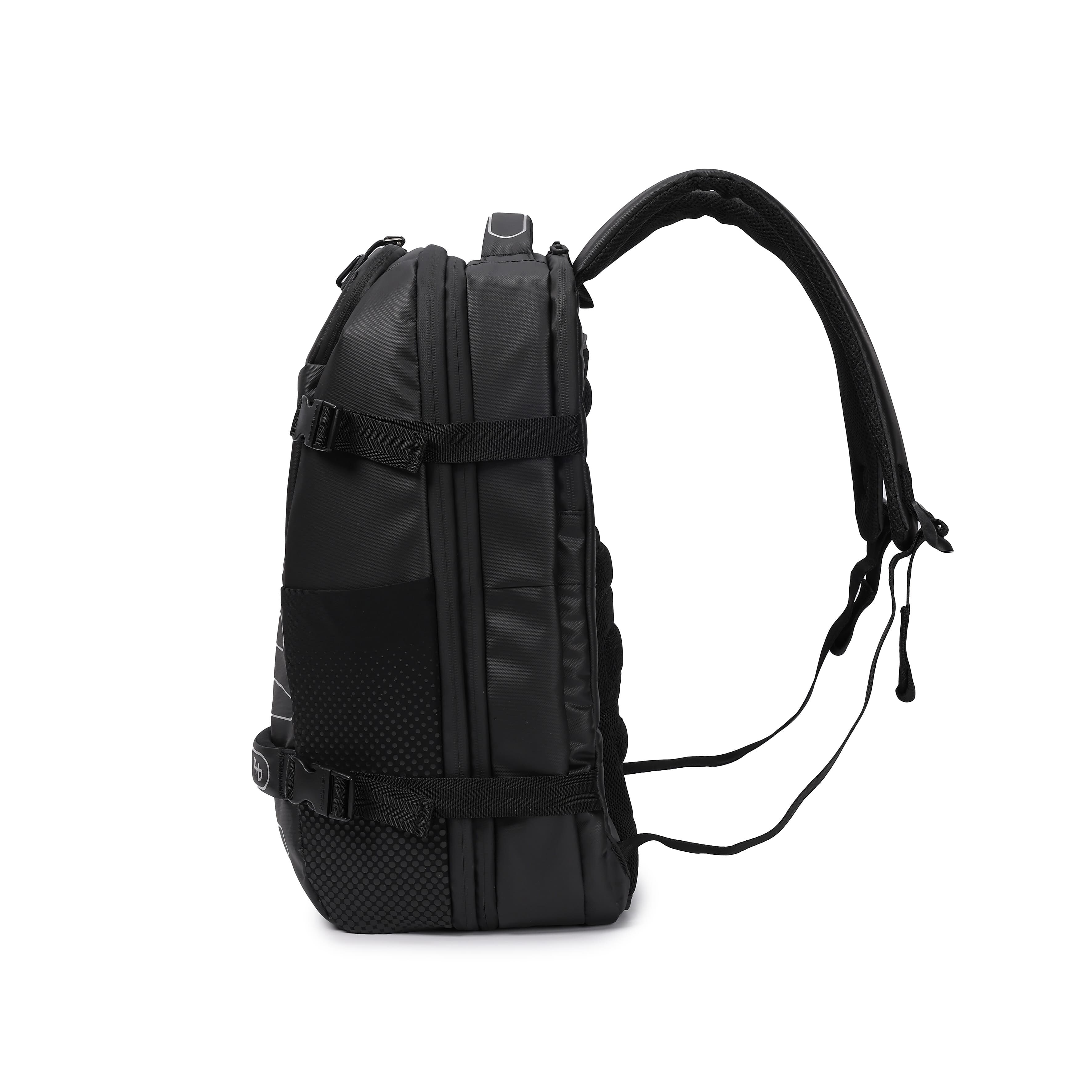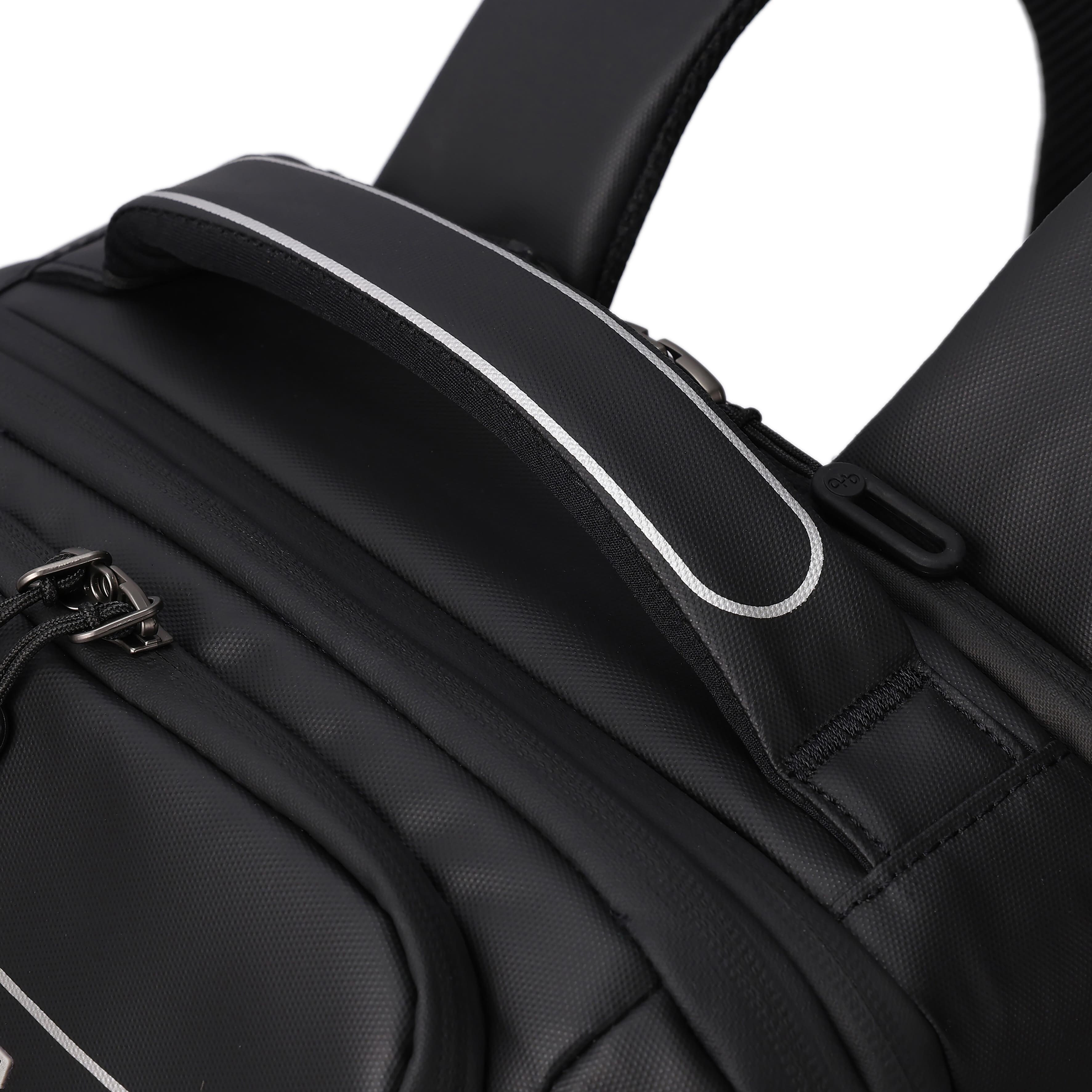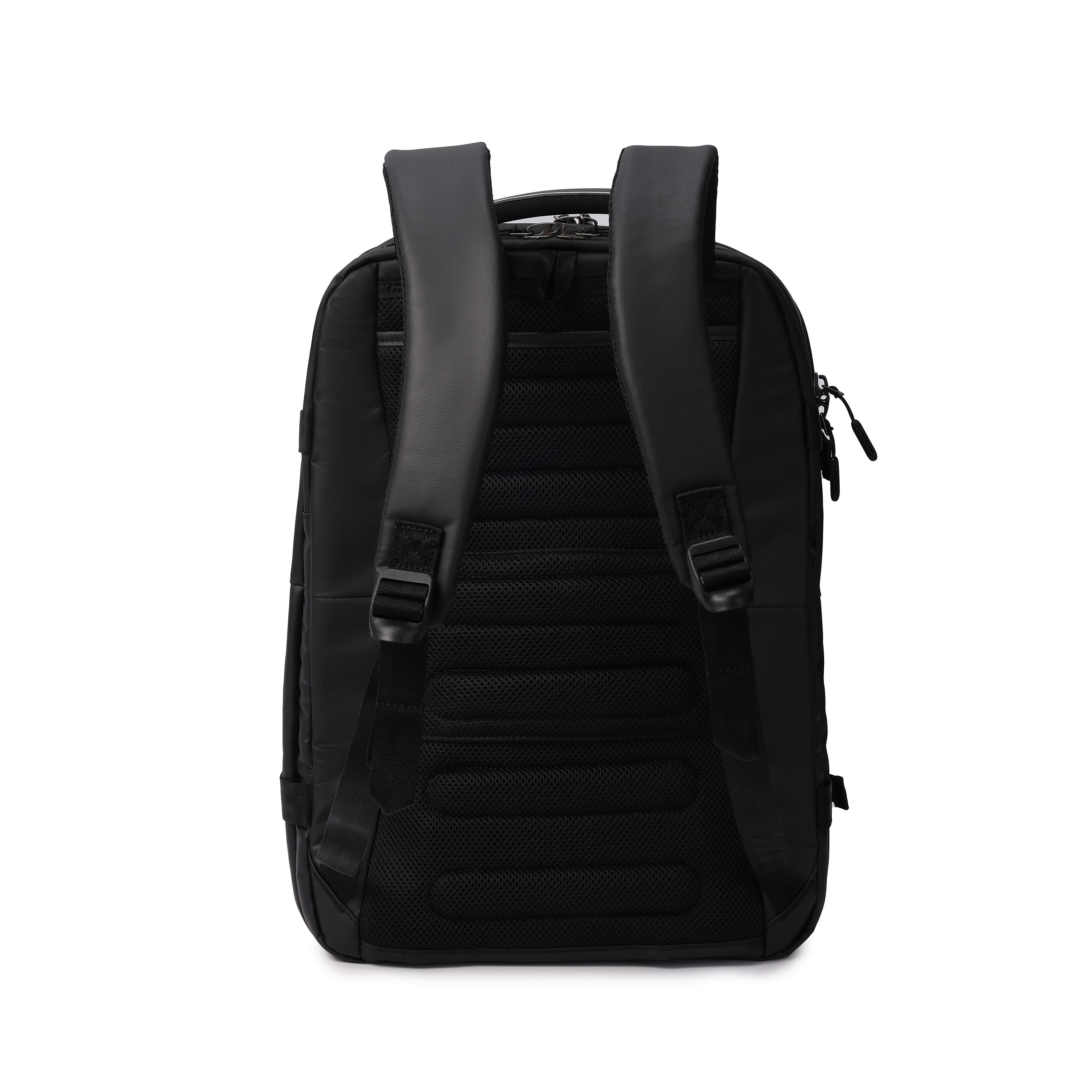 Вмісткий рюкзак підійде як і для щоденного використання, так і для подорожей. Зовнішня та внутрішня тканини виготовлені з 100% перероблених та сертифікованих матеріалів RPET (перероблені пластикові пляшки) зовнішня тканина: поліестер 600D RPET, внутрішня підкладка: поліестер RPET 150D. Має два основних відділення, одне з яких зі стримуючими кутами де розташована додаткова кишеня з RFID-захистом, відділ для смартфону та документів формату А4. Другий відділ для ноутбуку 15.6", на блискавці якого передбачена можливість розмістити навісний замок. Передня сторона оснащена кишенею для речей першої необхідності і світловідбиваючі елементи. На задній частині рюкзака розміщена кишеня для дощовика, планка для розміщення виробу на телескопічну ручку валізи і невелика стрічка-петля, що дозволяє легко зачепити продукти на невелику вішалкуне деформуючи та не пошкоджуючи ручки виробу. Також, має бокові кишені для пляшки та парасольки.