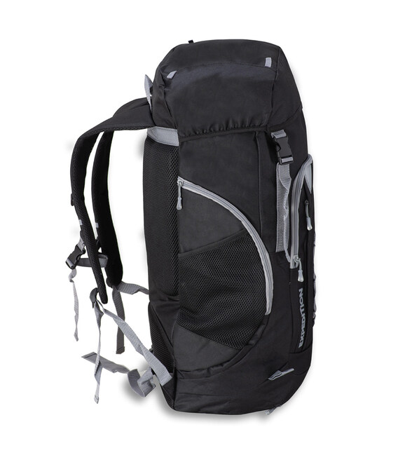 Semi Line 45 Black (A3046-1) має основне відділення, що закривається стяжкою і клапаном, що має чотири петлі для кріплення додатковим кордом легкого спорядження чи речей зверху. Рюкзак виконаний з водостійкого матеріалу Polyester PVC і має чохол від дощу, тож вміст буде надійно захищений від намокання. Чохол від дощу міститься в спеціальній кишені на дні рюкзака. Рюкзак має петлі Daisy chain, призначені для кріплення додаткового спорядження і петлі для кріплення трекінгових палиць. Світловідбиваючі елементи на шлейках і фасаді зроблять вас більш помітними в темний час доби.