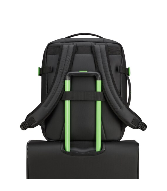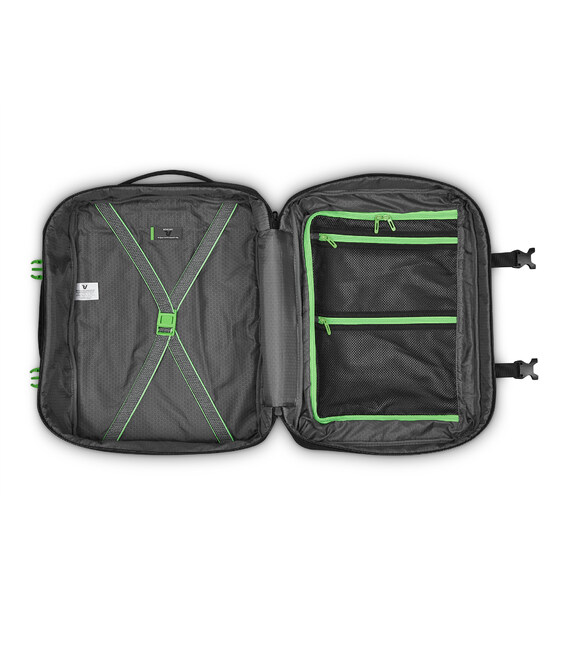 Ідеальний варіант для відряджень в яких Вам знадобляться, предмети першої необхідності і місце для одягу. Вироби колекції виготовлені з хвилястого поліестеру 900D з PU-покиттям, яке захищає від дощу, бризок, вологи й швидко сохне. Виріб оснащений: компактним основним відділом з кишенею для дрібних предметів з сітчастою перегородкою для організації та розділення одягу з еластичними притискними ременями. Розмір виробу дозволяє брати рюкзак на борт літака авіакомпанії EASYJET. Для зручності переміщення на задній частині розміщені м'які плечові ремені, бічна ручка для горизонтального перенесення та тканинна планка для кріплення на телескопічній ручці валізи.