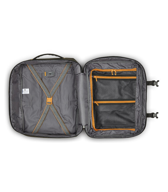 Ідеальний варіант для відряджень в яких Вам знадобляться, предмети першої необхідності і місце для одягу. Вироби колекції виготовлені з хвилястого поліестеру 900D з PU-покиттям, яке захищає від дощу, бризок, вологи й швидко сохне. Виріб оснащений: компактним основним відділом з кишенею для дрібних предметів з сітчастою перегородкою для організації та розділення одягу з еластичними притискними ременями. Розмір виробу дозволяє брати рюкзак на борт літака авіакомпанії EASYJET. Для зручності переміщення на задній частині розміщені м'які плечові ремені, бічна ручка для горизонтального перенесення та тканинна планка для кріплення на телескопічній ручці валізи.