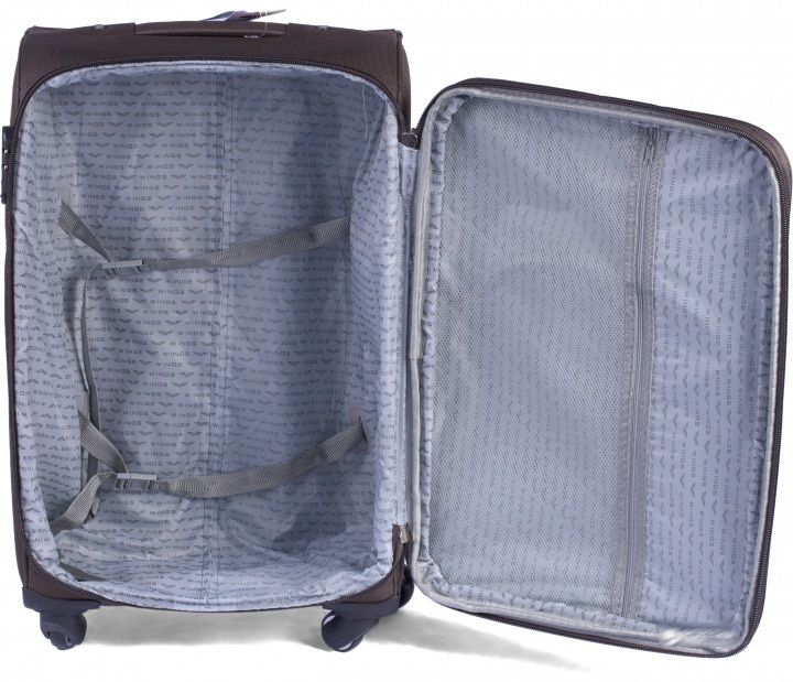 Мала польська дорожня валіза на чотирьох колесах Wings (Вінгс) зроблена з надійного і міцного синтетичного тканинного матеріалу - поліестер марки 600D. Цей матеріал легкий, зносостійкий, еластичний, не промокає. Металевий каркас додає жорстку форму валізи - ви можете не боятися його максимально навантажити.
