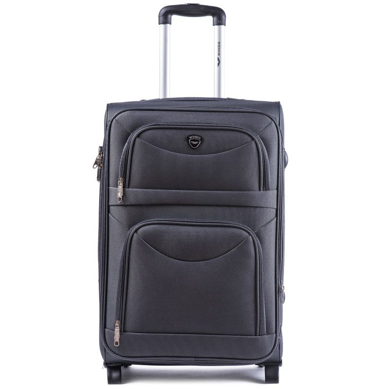 Середня польська дорожня валіза на двох колесах Wings (Вінгс) зроблена з надійного і міцного синтетичного тканинного матеріалу - поліестер марки 600D. Цей матеріал легкий, зносостійкий, еластичний, не промокає. Металевий каркас додає жорстку форму валізи - ви можете не боятися його максимально навантажити.