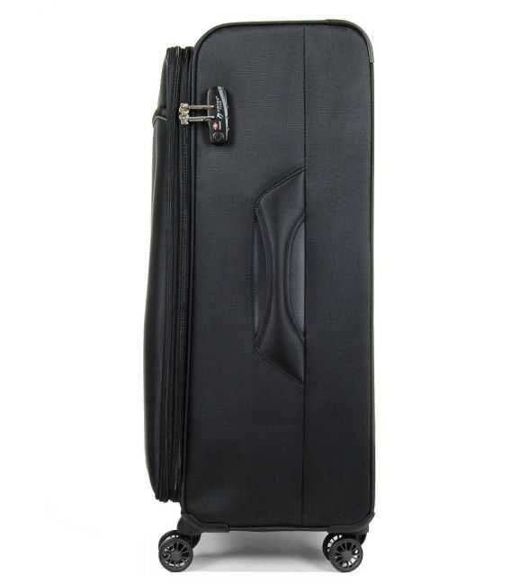 Данна валіза виготовлена з спеціально розроблених легких компонентів, завдяки яким зменшується вага валізи, що є вирішенням проблеми обмеження ваги багажу під час авіаперельотів. Всі основні елементи валізи виготовлені з легких матеріалів і міцної тканини. Ця модель відрізняється високою маневреністю і легкістю в управлінні, завдяки чотириколісній системі (чотири колеса з міцного і безшумного матеріалу, що обертаються на 360 градусів). В якості тканини вибрали нейлон, який має високу щільність (800D) та володіє водовідштовхувальними властивостями. Крім того, цей матеріал легко очищається від бруду і не піддається механічній деформації. Є розширення, яке дозволить збільшити обсяг валізи коли це необхідно. Каркас цієї валізи складається з гнучких поліпропіленових пластин і ущільненого дна, за рахунок чого, не тільки прекрасно тримає свою форму, але і дозволяють зберігати в цілості всі предмети знаходяться в середині. Одяг може бути акуратно закріплений на фіксуючих ременях. Також в середині валізи розміщений велика бічна кишеня-сітка, ззовні, для невеликих речей розташована кишеня в якій зручно складати все, що необхідно в дорозі.