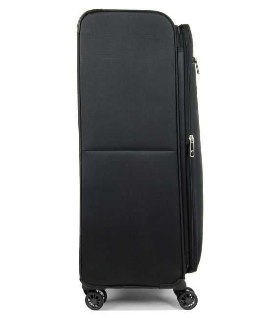 Данна валіза виготовлена з спеціально розроблених легких компонентів, завдяки яким зменшується вага валізи, що є вирішенням проблеми обмеження ваги багажу під час авіаперельотів. Всі основні елементи валізи виготовлені з легких матеріалів і міцної тканини. Ця модель відрізняється високою маневреністю і легкістю в управлінні, завдяки чотириколісній системі (чотири колеса з міцного і безшумного матеріалу, що обертаються на 360 градусів). В якості тканини вибрали нейлон, який має високу щільність (800D) та володіє водовідштовхувальними властивостями. Крім того, цей матеріал легко очищається від бруду і не піддається механічній деформації. Є розширення, яке дозволить збільшити обсяг валізи коли це необхідно. Каркас цієї валізи складається з гнучких поліпропіленових пластин і ущільненого дна, за рахунок чого, не тільки прекрасно тримає свою форму, але і дозволяють зберігати в цілості всі предмети знаходяться в середині. Одяг може бути акуратно закріплений на фіксуючих ременях. Також в середині валізи розміщений велика бічна кишеня-сітка, ззовні, для невеликих речей розташована кишеня в якій зручно складати все, що необхідно в дорозі.