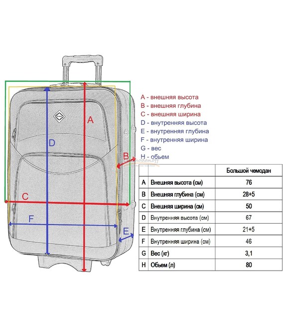 Валіза виготовлена з міцного матеріалу Cordura 600D стійкого до пошкоджень промокання і стирання. Корпус оснащений 5 незалежними один від одного колесами, що виключає знос валізи. Має висувну ручку, дві зручні ручки для рук, що дозволяють зручно переносити валізу, кодовий замок.