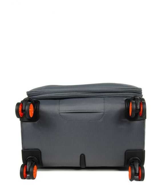 Данна валіза виготовлена з спеціально розроблених легких компонентів, завдяки яким зменшується вага валізи, що є вирішенням проблеми обмеження ваги багажу під час авіаперельотів. Всі основні елементи валізи виготовлені з легких матеріалів і міцної тканини. Ця модель відрізняється високою маневреністю і легкістю в управлінні, завдяки чотириколісній системі (чотири колеса з міцного і безшумного матеріалу, що обертаються на 360 градусів). В якості тканини вибрали нейлон, який має високу щільність (800D) та володіє водовідштовхувальними властивостями. Крім того, цей матеріал легко очищається від бруду і не піддається механічній деформації. Є розширення, яке дозволить збільшити обсяг валізи коли це необхідно. Каркас цієї валізи складається з гнучких поліпропіленових пластин і ущільненого дна, за рахунок чого, не тільки прекрасно тримає свою форму, але і дозволяють зберігати в цілості всі предмети знаходяться в середині. Одяг може бути акуратно закріплений на фіксуючих ременях. Також в середині валізи розміщений велика бічна кишеня-сітка, ззовні, для невеликих речей розташована кишеня в якій зручно складати все, що необхідно в дорозі.