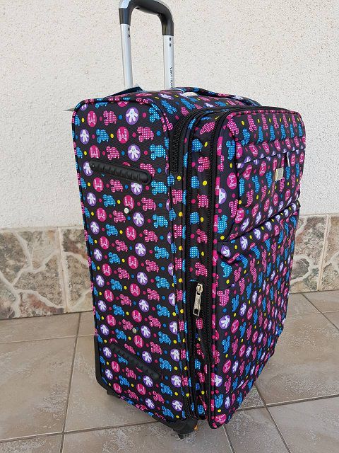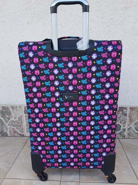 Міцна і зручна валіза з красивим забарвленням в рожевих тонах та з цікавим принтом Міккі Мауса. Матеріал - поліестер. Стійкий до світлової і теплової дії. Чотири знімних колеса обертаються на 360 градусів, додають маневреності і дозволяють котити валізу поруч з собою, і розподіляють навантаження рівномірно. Має вбудований кодовий замок з функцією багаторазової заміни коду, який забезпечує збереження внутрішнього багажу. Висувна телескопічна ручка, ручка зверху і ручка збоку валізи. Можливість збільшення обсягу валізи на 20%. Закривається валіза на блискавку. Усередині одне відділення, в якому передбачені притискні ремені для фіксації речей. Всередині на кришці валізи кишеня на блискавці. Зовні на передній стінці валізи дві кишені на блискавці.