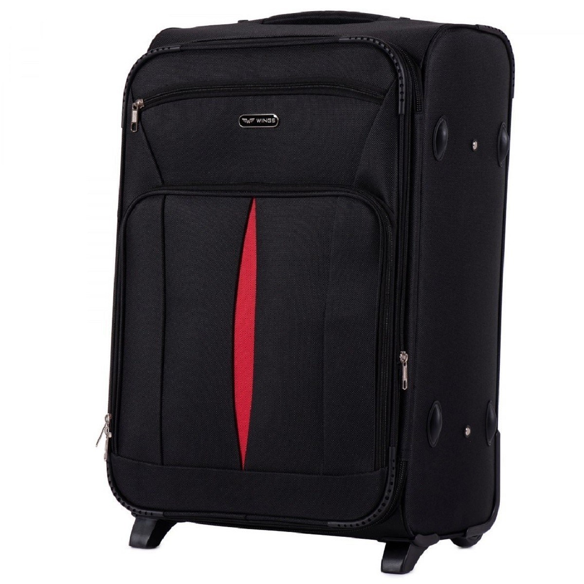 Мала польська дорожня валіза на двох колесах Wings (Вінгс) зроблена з надійного і міцного синтетичного тканинного матеріалу - поліестер марки 600D. Цей матеріал легкий, зносостійкий, еластичний, не промокає. Металевий каркас додає жорстку форму валізи - ви можете не боятися його максимально навантажити.