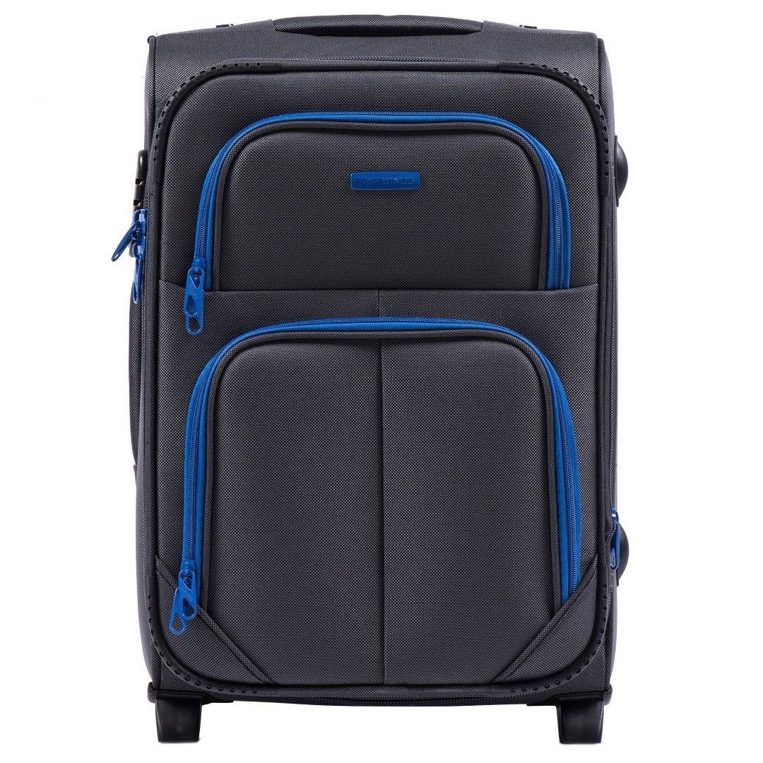 Для дрібних і речей першої потреби у валізі з зовнішньої лицьової сторони передбачені два досить просторих кишені. Всі відділення валізи закриваються на міцні та надійні блискавки, а основний, самий великий відділ, може бути захищений фіксацією язичків блискавки в спеціальний кодовий замок**. Зсередини великий відділ валізи обтягнутий спеціальним естетично приємним декоративним матеріалом. Спеціальні декоративні вставки на зовнішній стороні валізи, сучасний і модний крій роблять цей чемодан витонченим і елегантним.