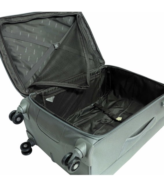 Каркас цієї валізи складається з гнучких поліпропіленових пластин і ущільненого дна, за рахунок чого, не тільки прекрасно тримає свою форму, але і дозволяє зберігати в цілості всі предмети, що знаходяться в середині. Одяг можна акуратно закріплювати на фіксуючі ремені. Також в середині валізи розміщена велика бічна кишеня-сітка, ззовні, для невеликих речей розташована кишеня в якій зручно складати все, що необхідно в дорозі.