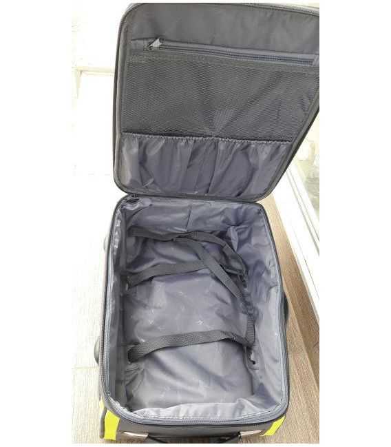 Усередині - одне велике основне відділення з ременями фіксації багажу. Зверху і збоку валізи розташовані ручки для перенесення в вертикальному або горизонтальному положеннях. На бічній стороні валізи маленькі ніжки для захисту і стійкості валізи в горизонтальному положенні. Усередині валізи під підкладкою розташована металева скоба для міцності каркаса, яка не впливає на його вагу.