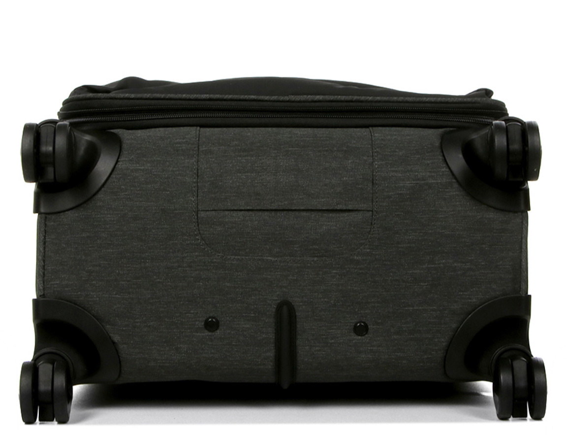 Шасі складається з чотирьох подвійних незалежних обертових поліуретанових коліс з підшипниками, так що кожна валіза може обертатися навколо своєї осі.