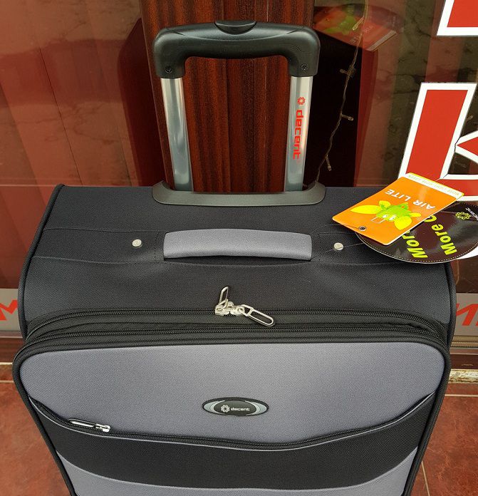 Якісна, дуже легка валіза французького бренду Decent. Спеціальна конструкція для авіа перельотів. Дана валіза виготовлена з спеціально розроблених легких компонентів, завдяки яким зменшується вага валізи, що є вирішенням проблеми обмеження ваги багажу під час авіаперельотів. Виготовлена з міцного і водостійкого поліестеру.
