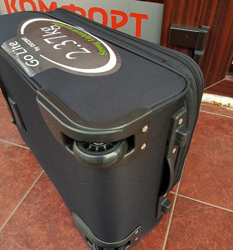 Також на передній панелі валізи є кишеня для дрібниць або документов.Сверху і збоку валізи розташовані ручки для перенесення в вертикальному або горизонтальному положеннях. На бічній стороні валізи маленькі ніжки для захисту і стійкості валізи в горизонтальному положеніі. Закриваеться валіза на навісний кодовий замок. На блискавці є два металевих кільця для можливого додаткового навісного замка.