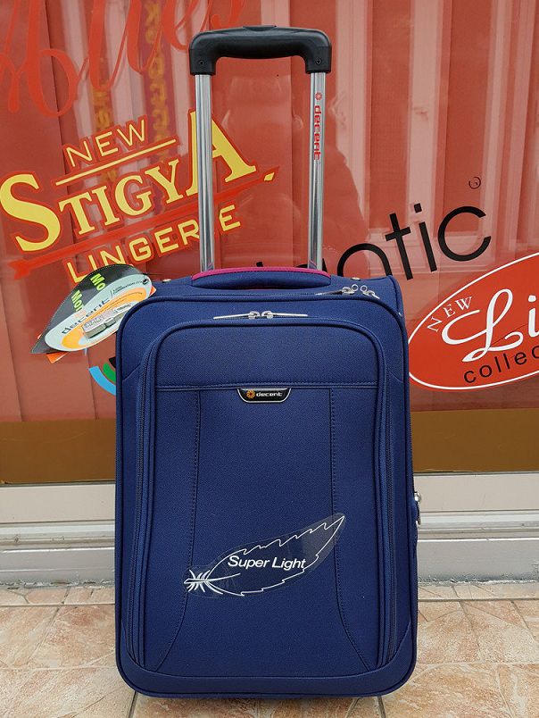 Якісна, дуже легка валіза французького бренду Decent. Спеціальна конструкція для авіа перельотів. Дана валіза виготовлена з спеціально розроблених легких компонентів, завдяки яким зменшується вага валізи, що є вирішенням проблеми обмеження ваги багажу під час авіаперельотів. Виготовлена з міцного і водостійкого поліестеру.