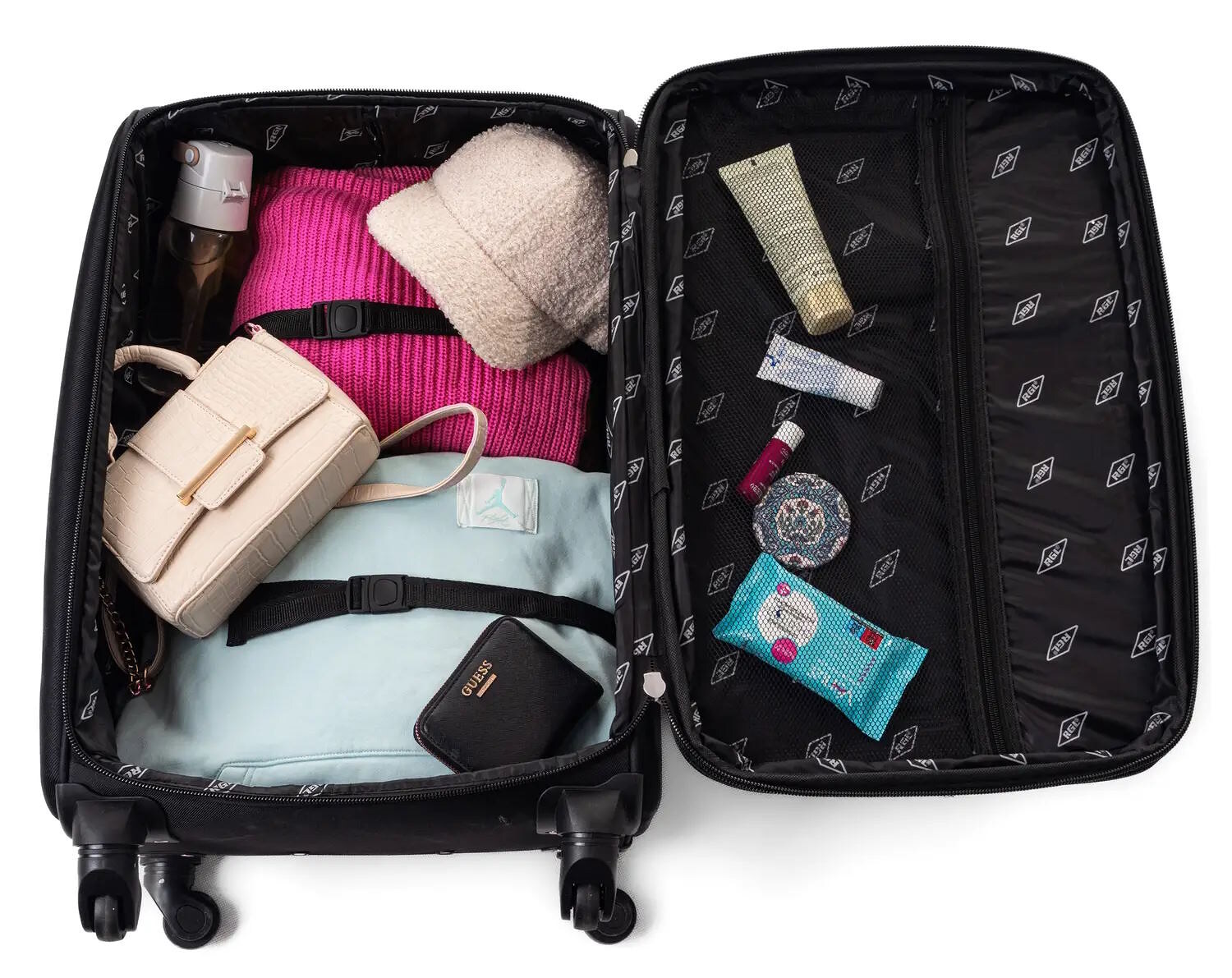 Раціонально організований внутрішній простір: Валіза RGL S-010 оснащена ременями для фіксації речей, що допомагає уникнути безладу в багажі під час транспортування. Також передбачене окреме відділення на блискавці для дрібних речей або цінних предметів, що дозволяє зберігати порядок і швидко знаходити потрібні речі.