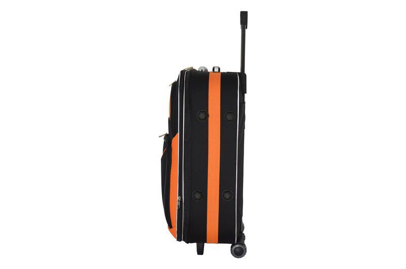 Валіза виготовлена з міцного матеріалу Cordura 600D стійкого до пошкоджень промокання і стирання. Корпус оснащений 5 незалежними один від одного колесами, що виключає знос валізи. Має висувну ручку, дві зручні ручки для рук, що дозволяють зручно переносити валізу, кодовий замок.