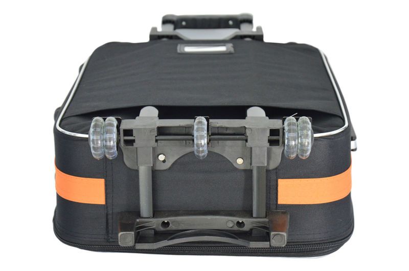 Валіза виготовлена з міцного матеріалу Cordura 600D стійкого до пошкоджень промокання і стирання. Корпус оснащений 5 незалежними один від одного колесами, що виключає знос валізи. Має висувну ручку, дві зручні ручки для рук, що дозволяють зручно переносити валізу, кодовий замок.