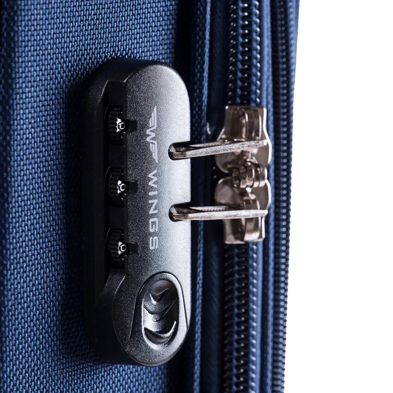 Для захисту вашого багажу, валізи Wings (Вінгс) оснащені вбудованим кодовим замком. Блискавки, що закривають основне відділення, мають спеціальні «собачки», які заходять в кодовий замок.